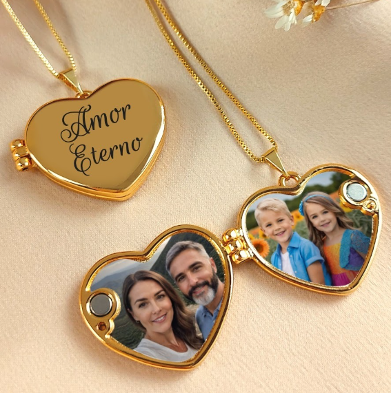 Relicário coração dourado com gravação personalizada uma peça exclusivo da coleção memórias para eternizar momentos únicos. O pingente abre delicadamente e pode ser personalizado com a foto de quem você ama, tornando cada joia um verdadeiro tesouro cheio de emoção. O presente perfeito para celebrar o amor com todo carinho e significado.